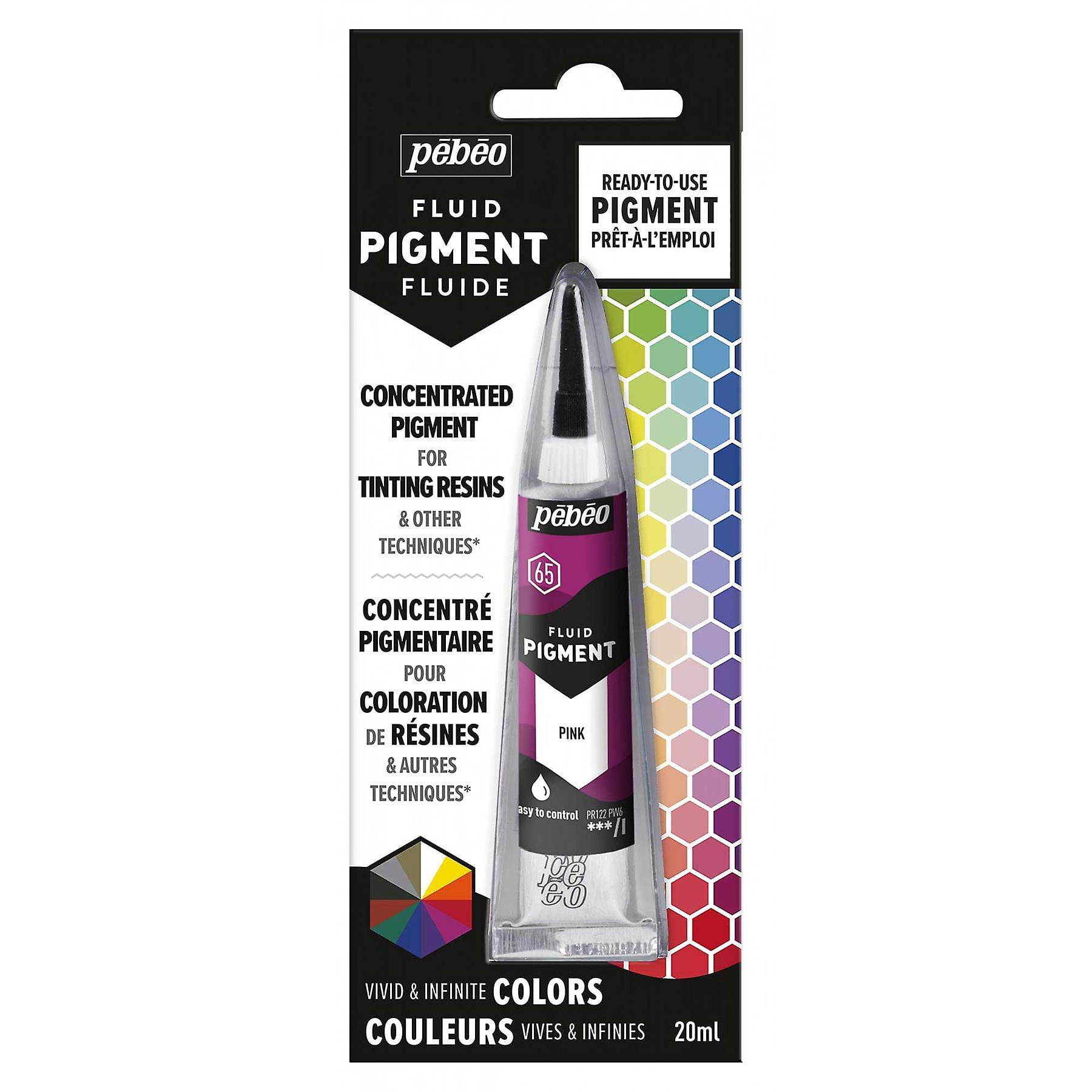 Skoncentrowany pigment do barwienia żywic i innych technik. Pebeo Fluid Pigment może zostać użyty w połączeniu z żywicą epoksydową Gedeo, a także innymi produktami bazującymi na rozpuszczalnikach jak farby olejne czy media do farb olejnych. Jasne, napigmentowane kolory ze świetną odpornością na światło. W zależności od ilości użytego pigmentu można otrzymać transparentne lub kryjące koloru. Dostępne w 20ml tubkach.